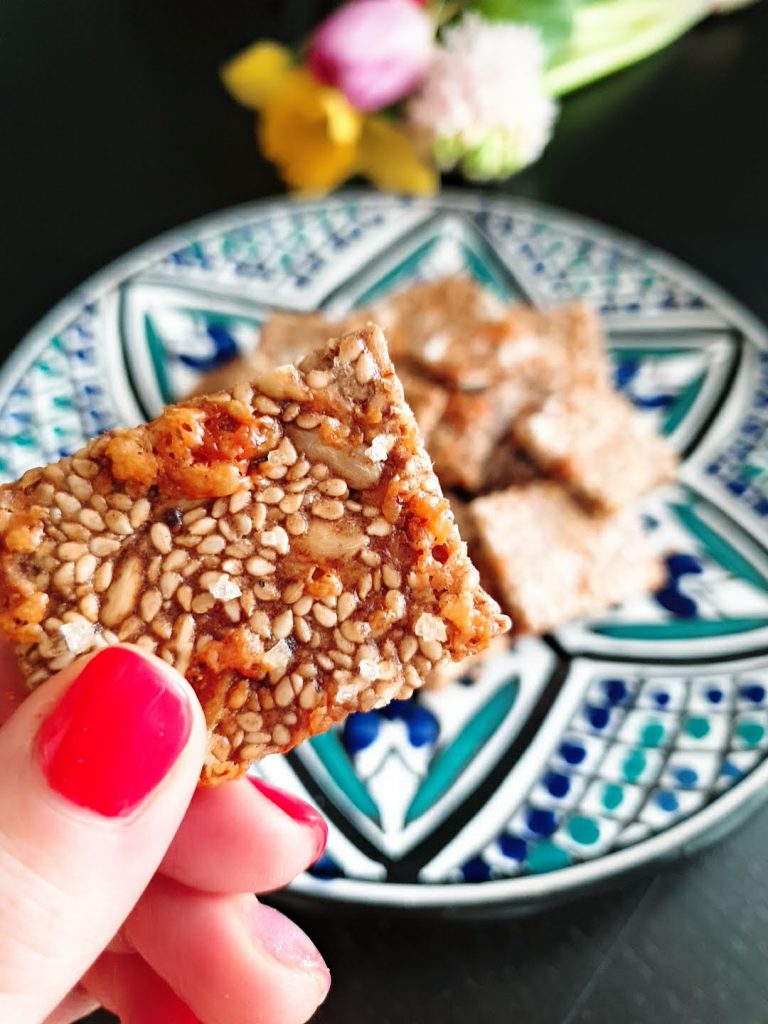 Itt található meg az eredeti angol recept: https://www.dietdoctor.com/recipes/low-carb-sesame-crispbread