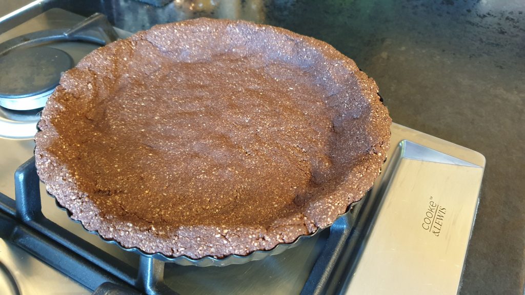 Rásimítjuk az összes krémet a kihűlt pite tésztánkra, és párórára a hűtőbe tesszük.