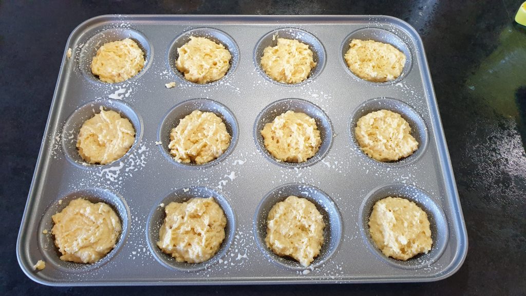 A tojásos keverékhez adjuk a száraz hozzávalókat, spatula segítségével összekeverjük az egészet.