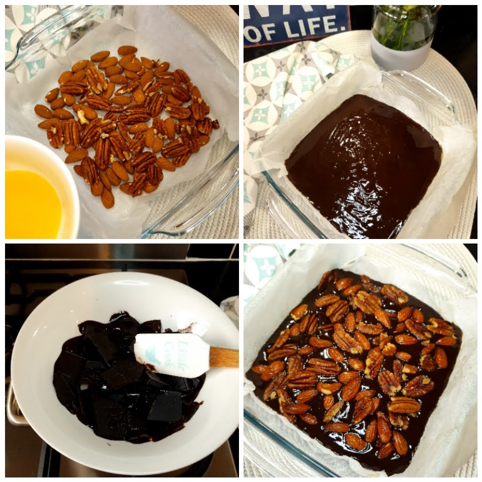 Én vízgőz felett szeretem elkészíteni, amikor a csokoládé már elkezd olvadni, hozzá adom az olvasztott kókuszzsírt és a mogyoróvajat is, folyamatosan kevergetem, majd, amikor már háromnegyed része elolvadt, akkor leveszem a vízgőzről és úgy keverem tovább amig teljesen el nem olvad az összes csokoládé.