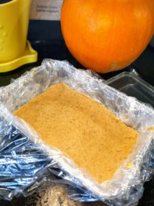 Fóliát egy műanyag tálba tettem, beleöntöttem a masszát, ráterítettem a tetejére a fóliát és így tettem be a fagyasztóba.