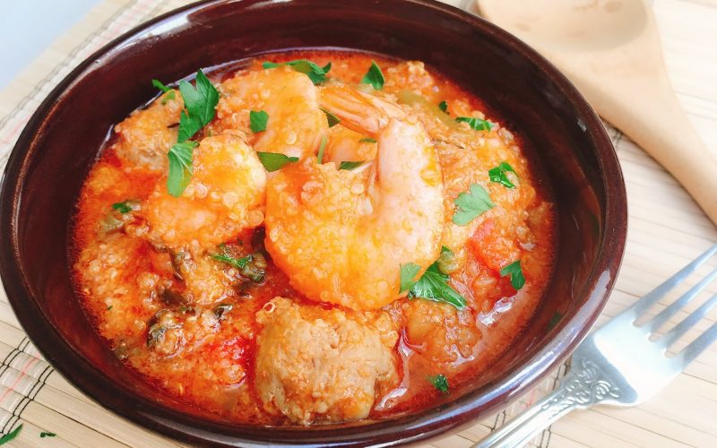 After one hour add the cauliflower rice and cook for an other 30 minutes.