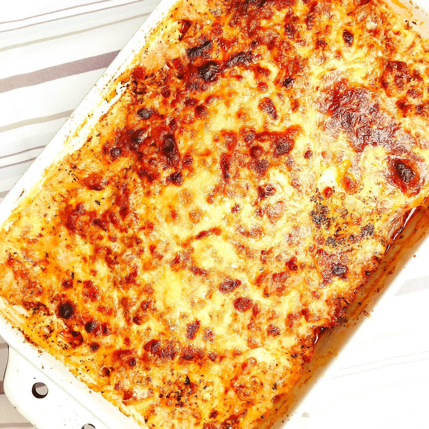 Pour the bechamel sauce on the top and sprinkle with parmesan cheese.