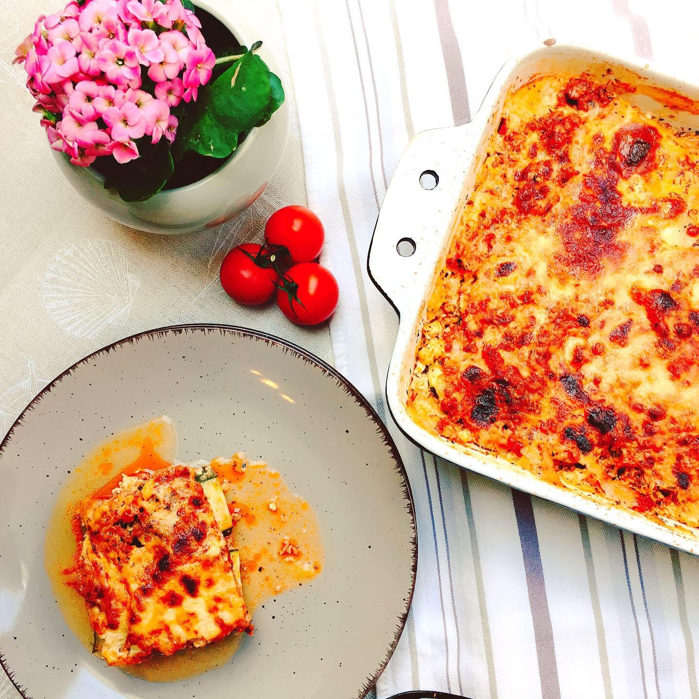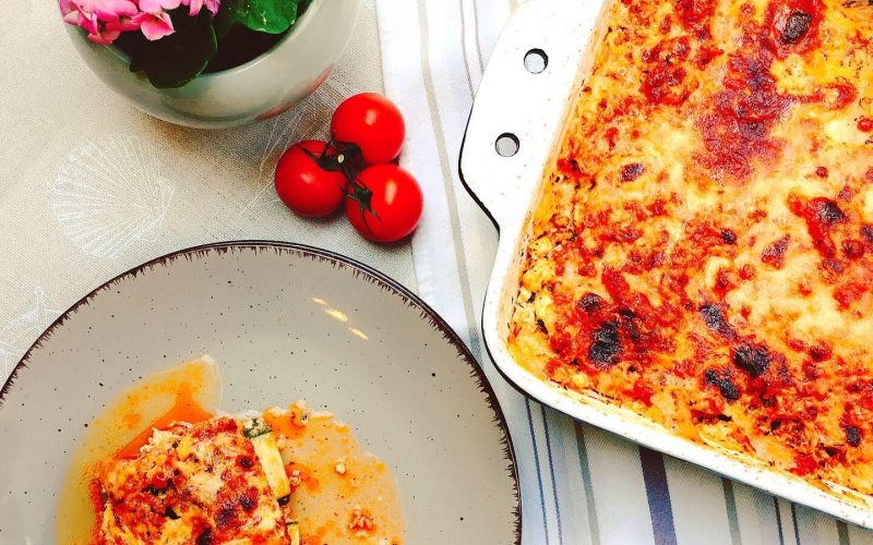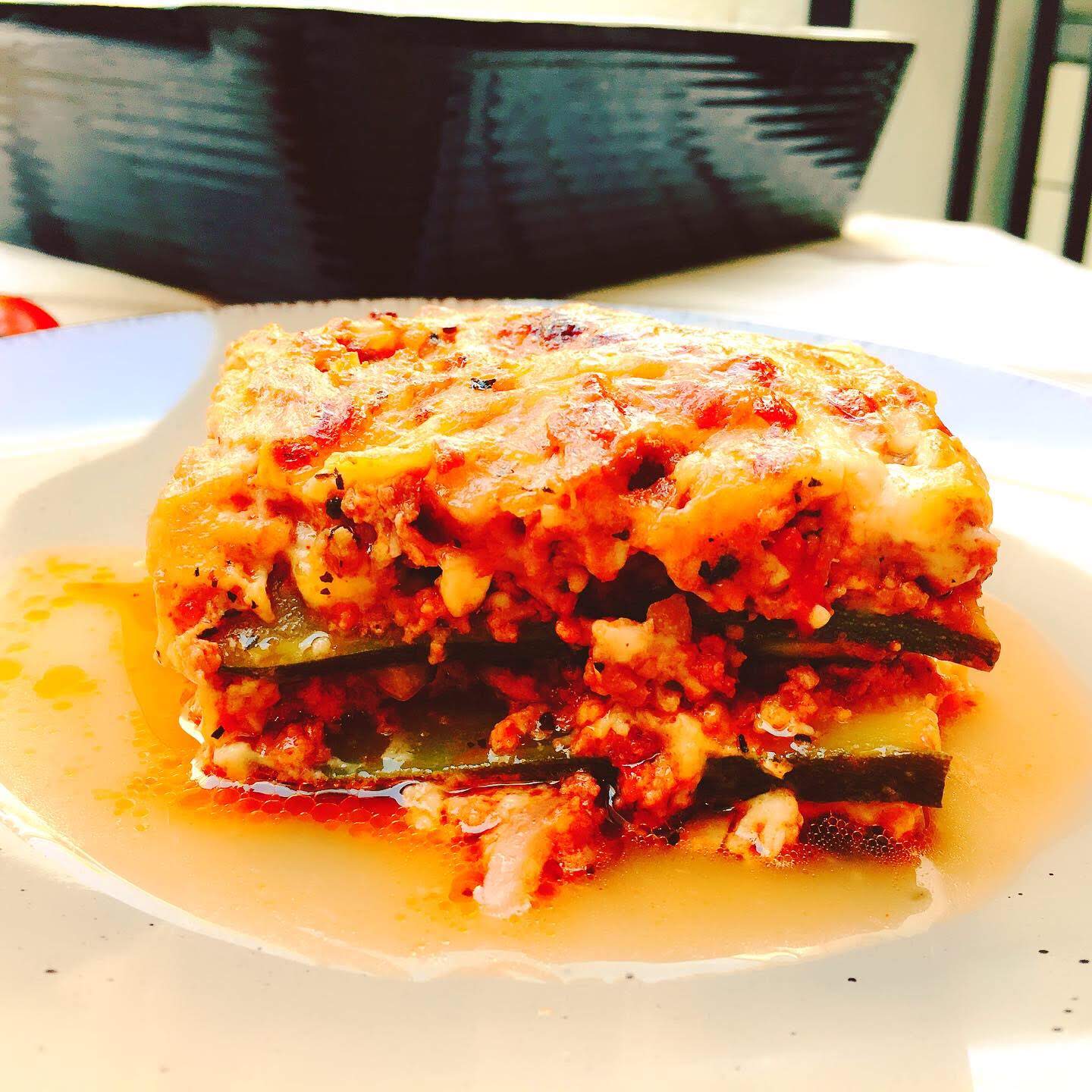 Then put one layer of meat and zucchini again and add the rest of the meat.