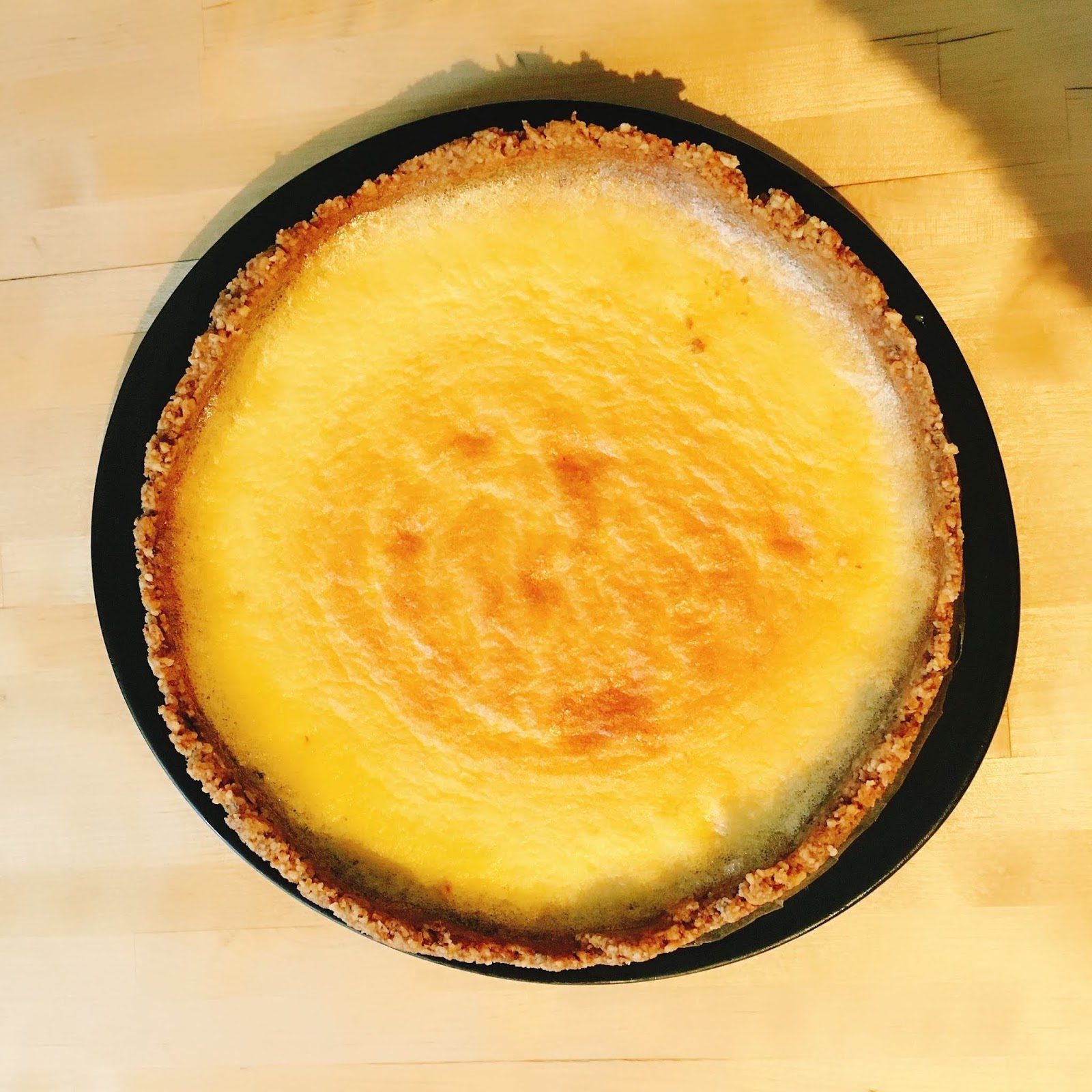 Put baking paper in a cake pan and add in the pastry.
