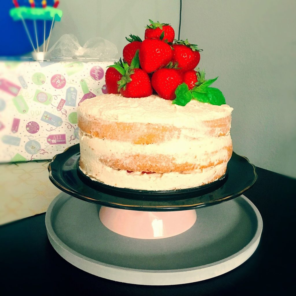 Keto White Chocolate & Strawberry Mascarpone Cake