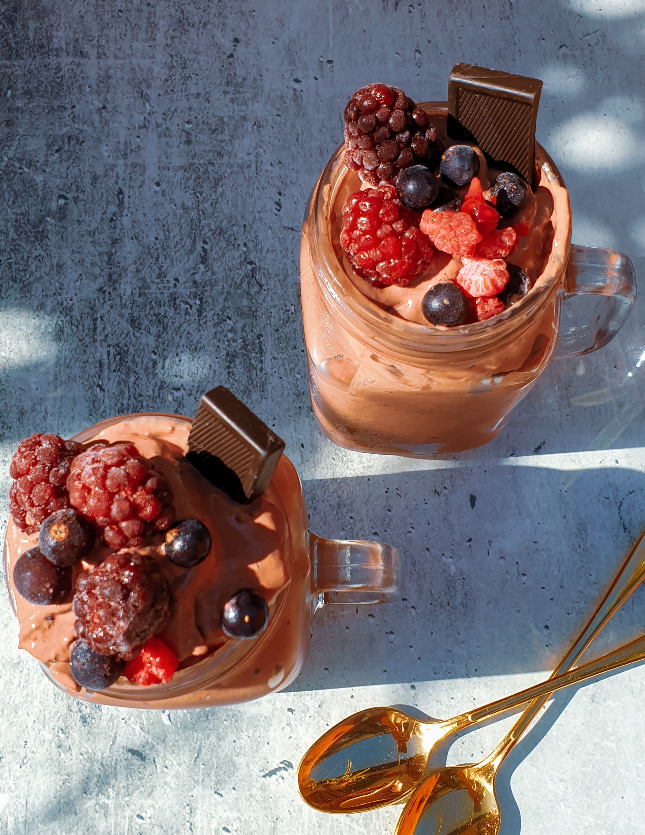 Put them in bowls and add fresh fruits on the top with the dark chocolate.